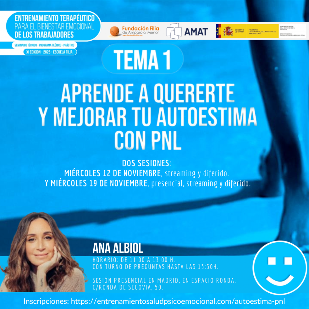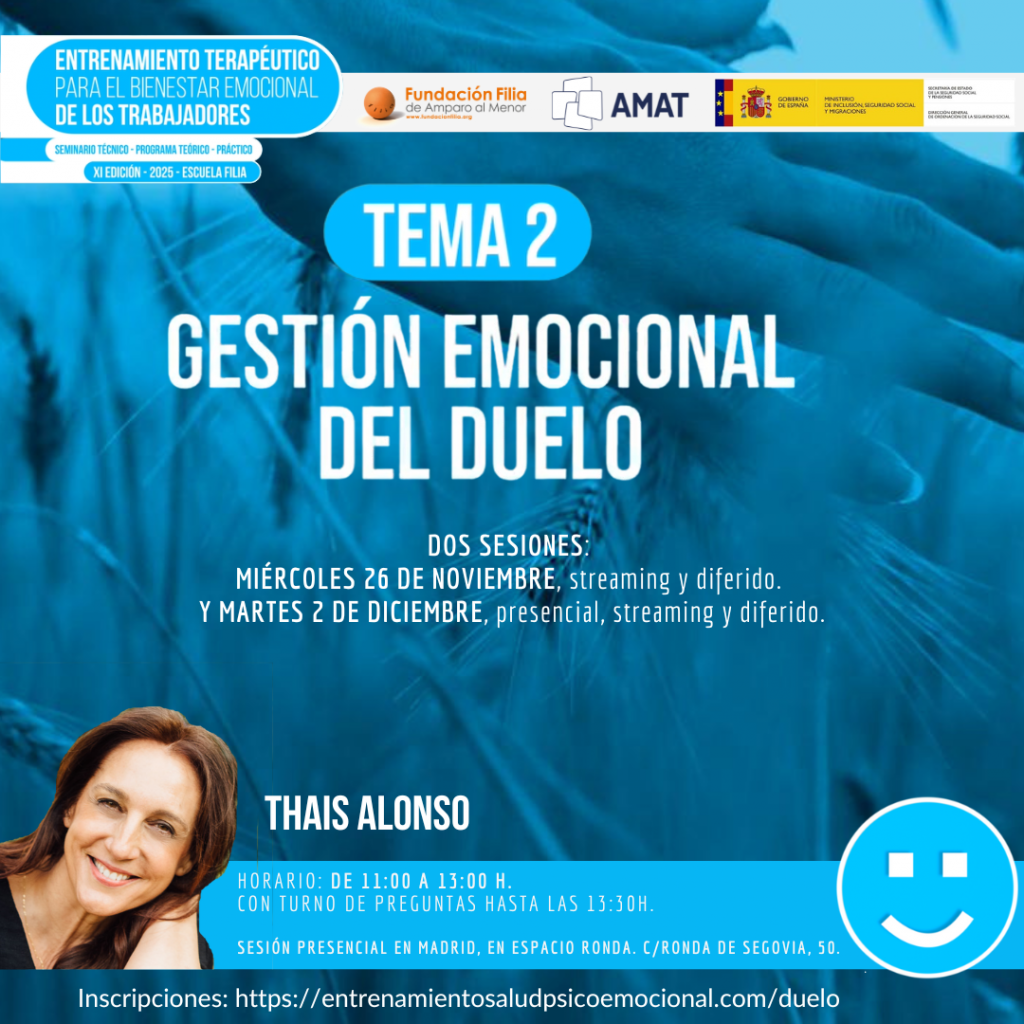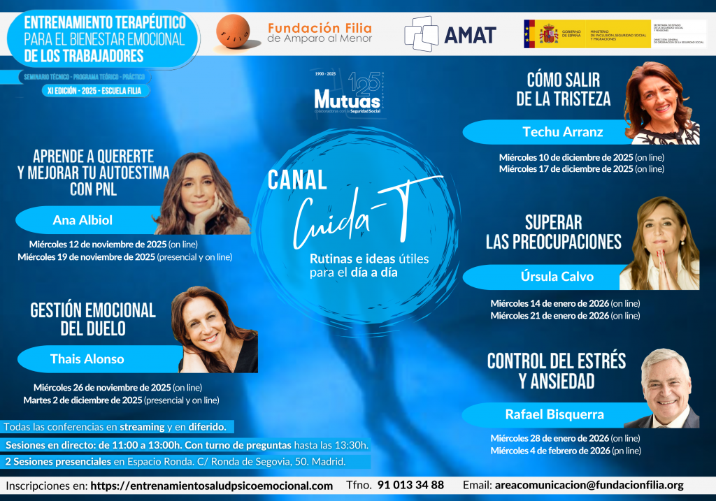 Este Seminario está basado en los VALORES de la Obra Social de la Fundación FILIA, cuyo objetivo es el bienestar psicoemocional de las personas. Inscrito en el Programa para la Prevención y Reducción de las Contingencias Profesionales y Comunes en las Empresas dentro del Plan de Actividades Conjuntas de las Mutuas que desarrolla AMAT,